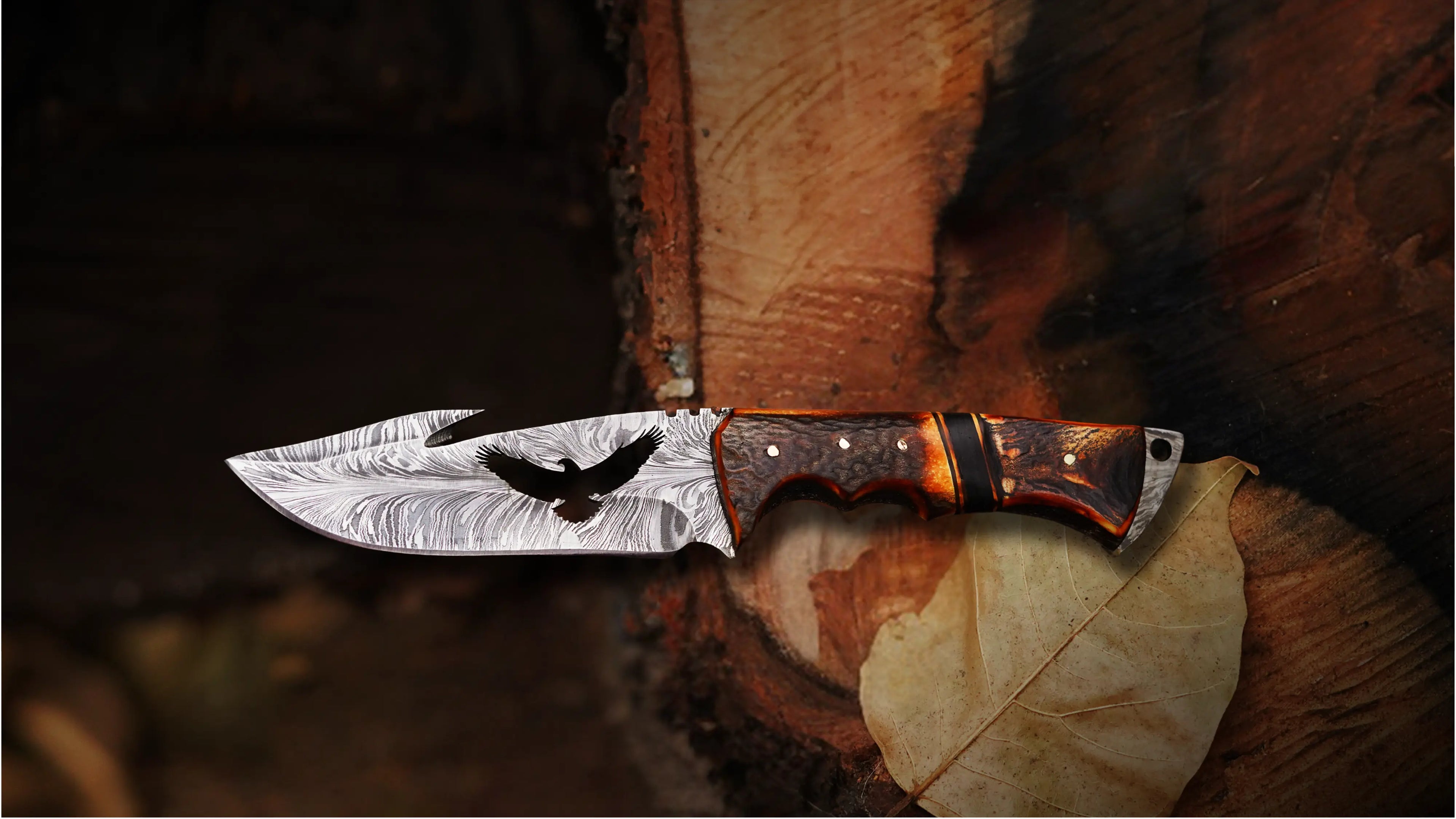 Blazeheart - 10" Hand Forged Damascus Steel Hunting Knife