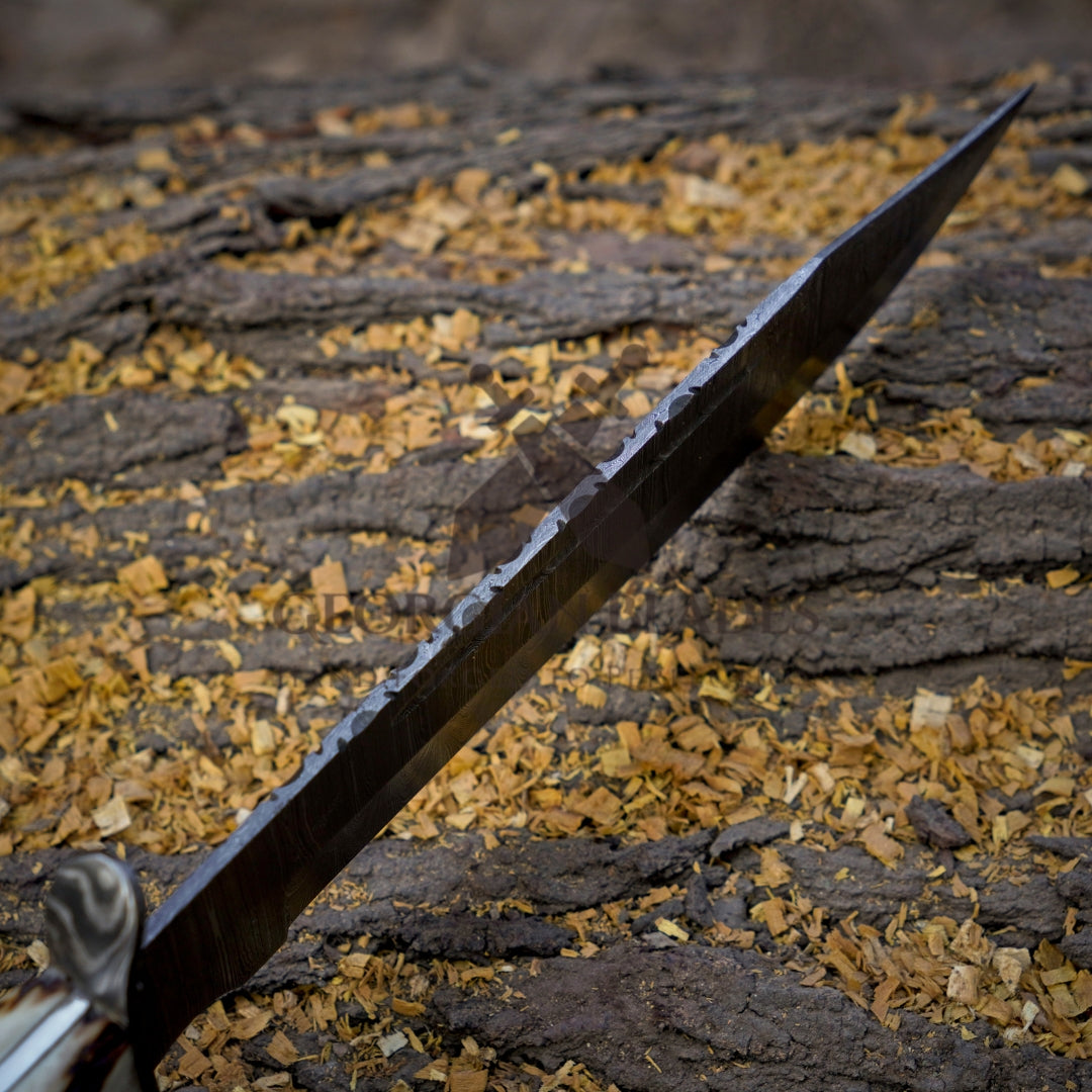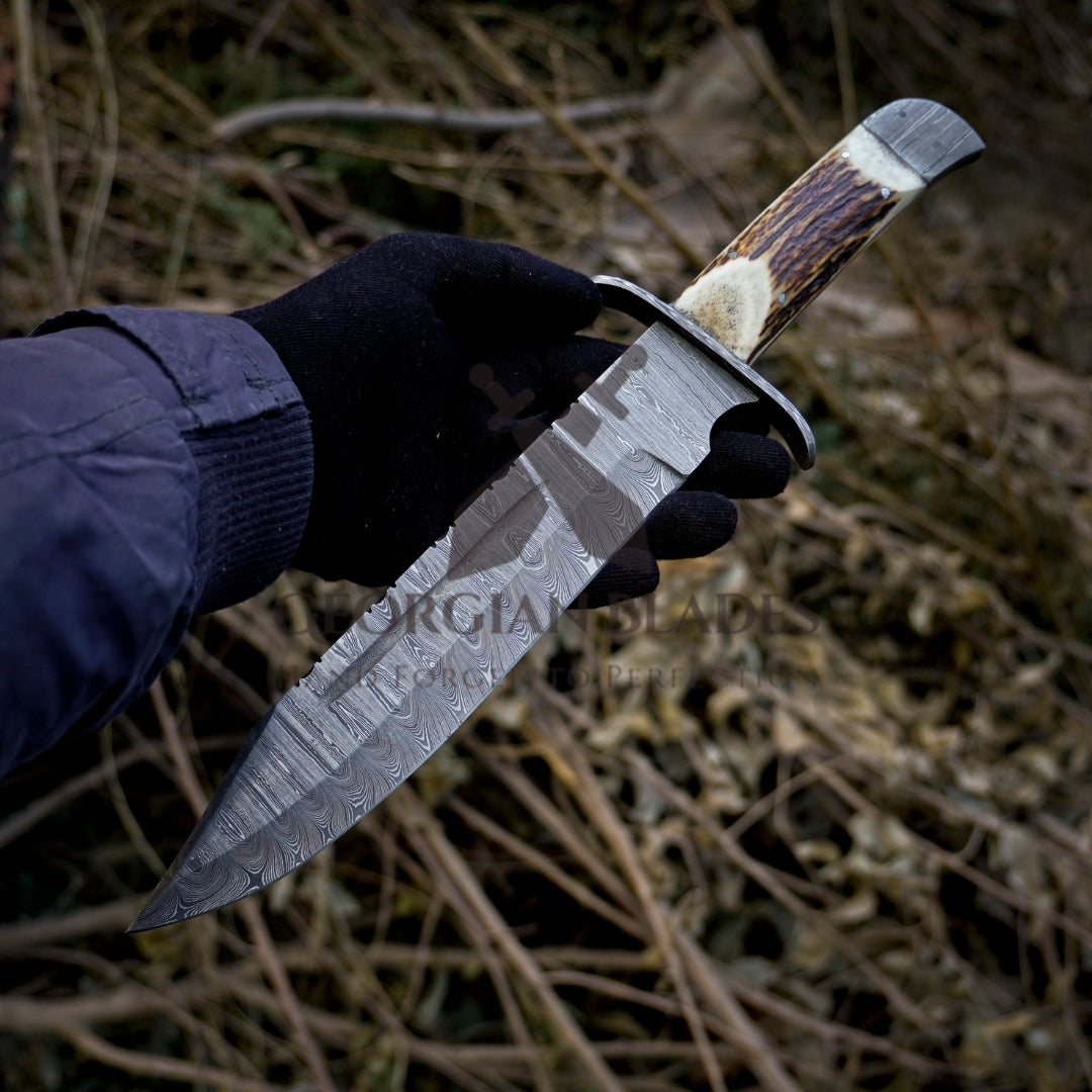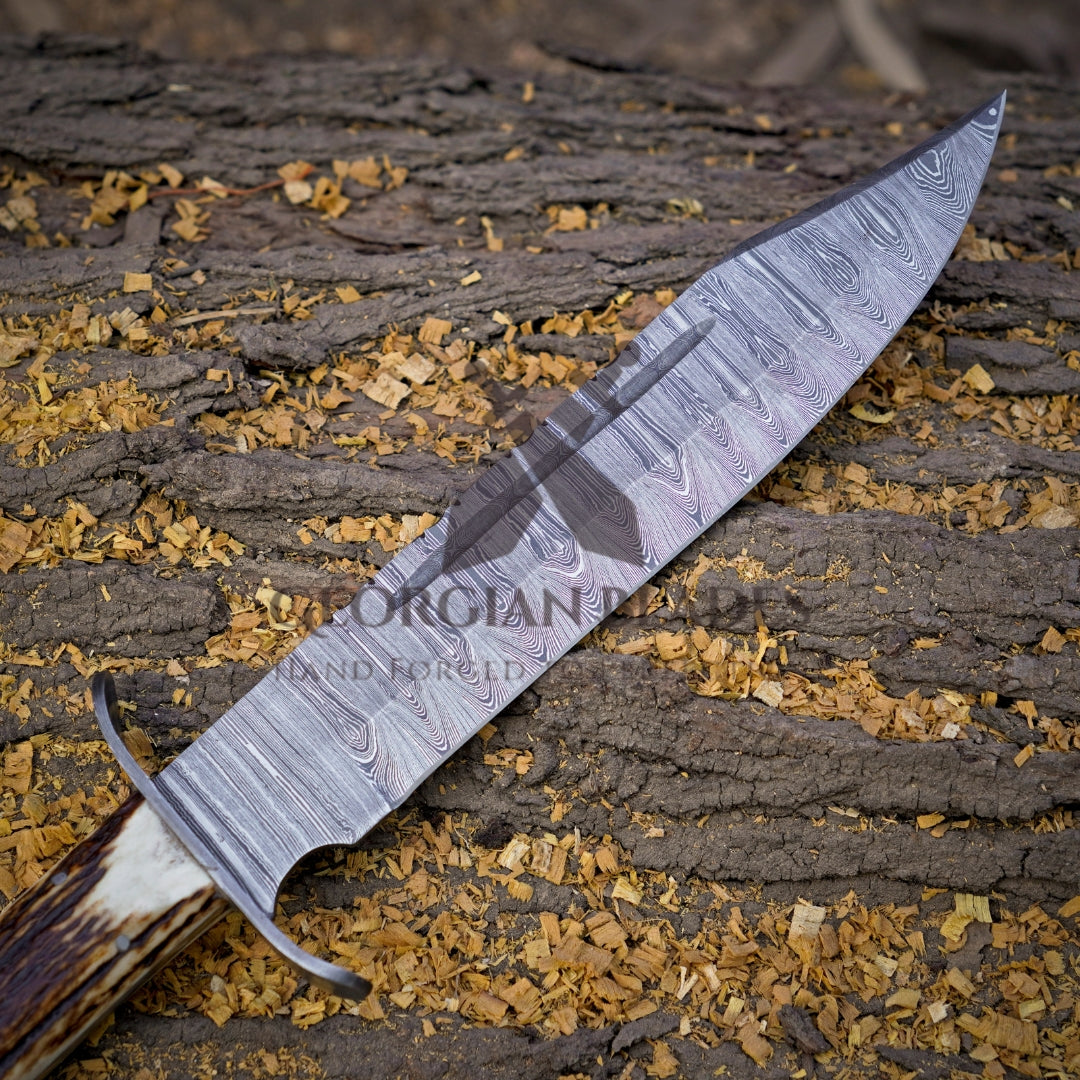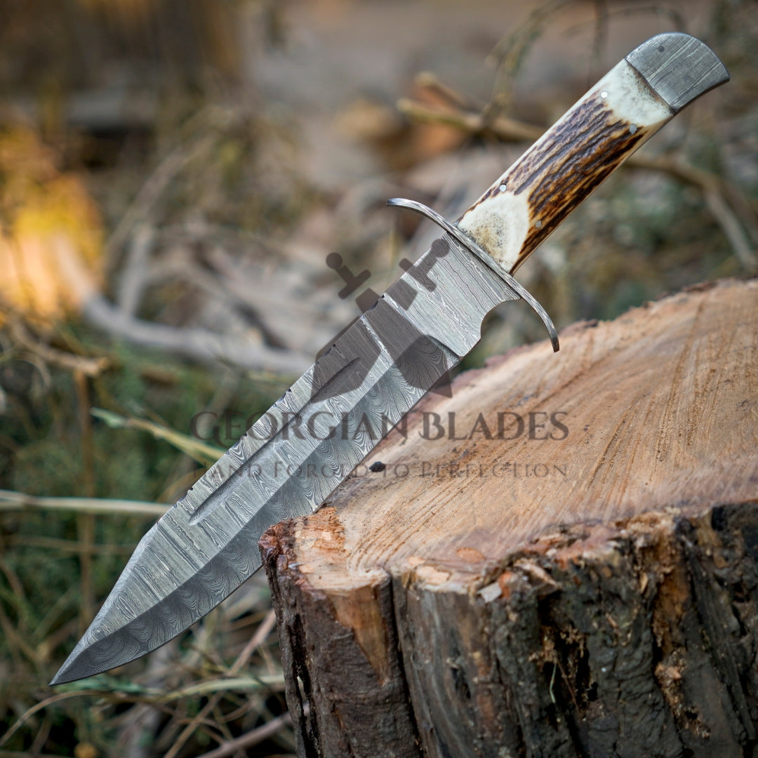 Mountain Majesty: 15" Handmade Damascus Steel Bowie Knife- Full Tang - Stag Antler Handle