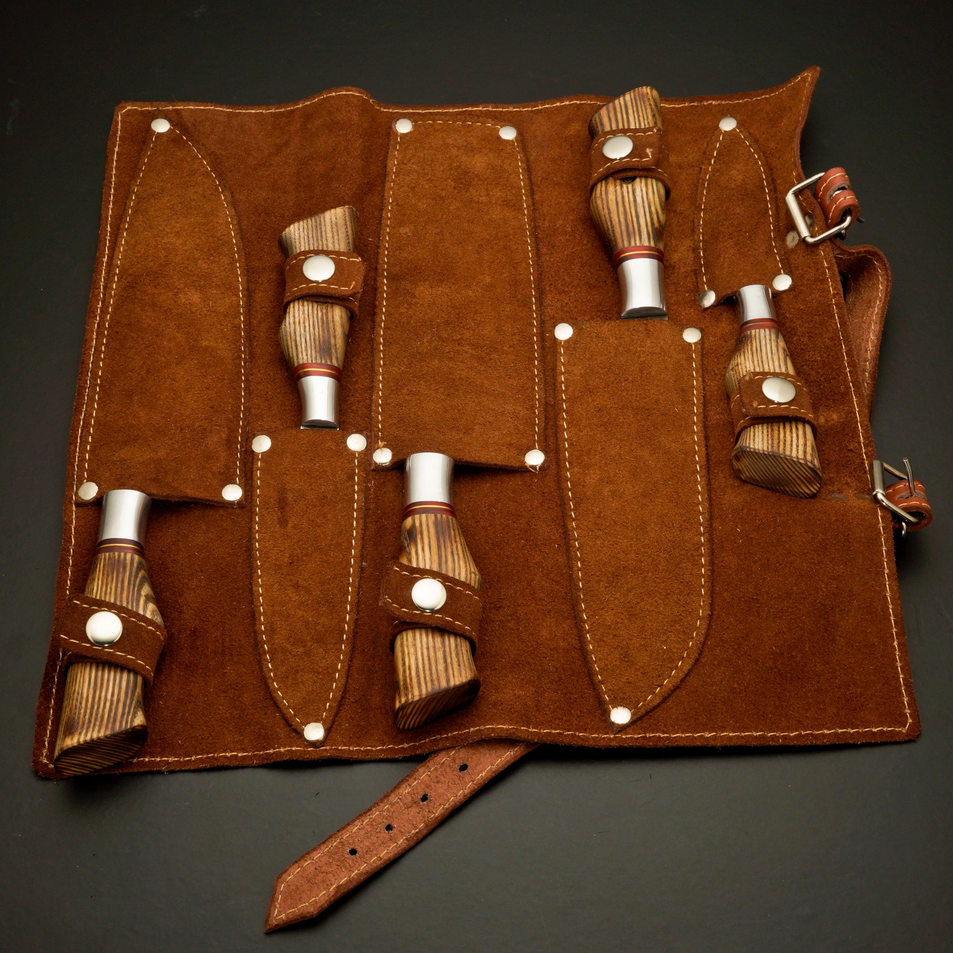 The set comes with a professionally crafted leather roll designed to protect each knife and keep them organized whether stored at home or carried on the go. It complements the handcrafted nature of the knives and ensures long-term protection.