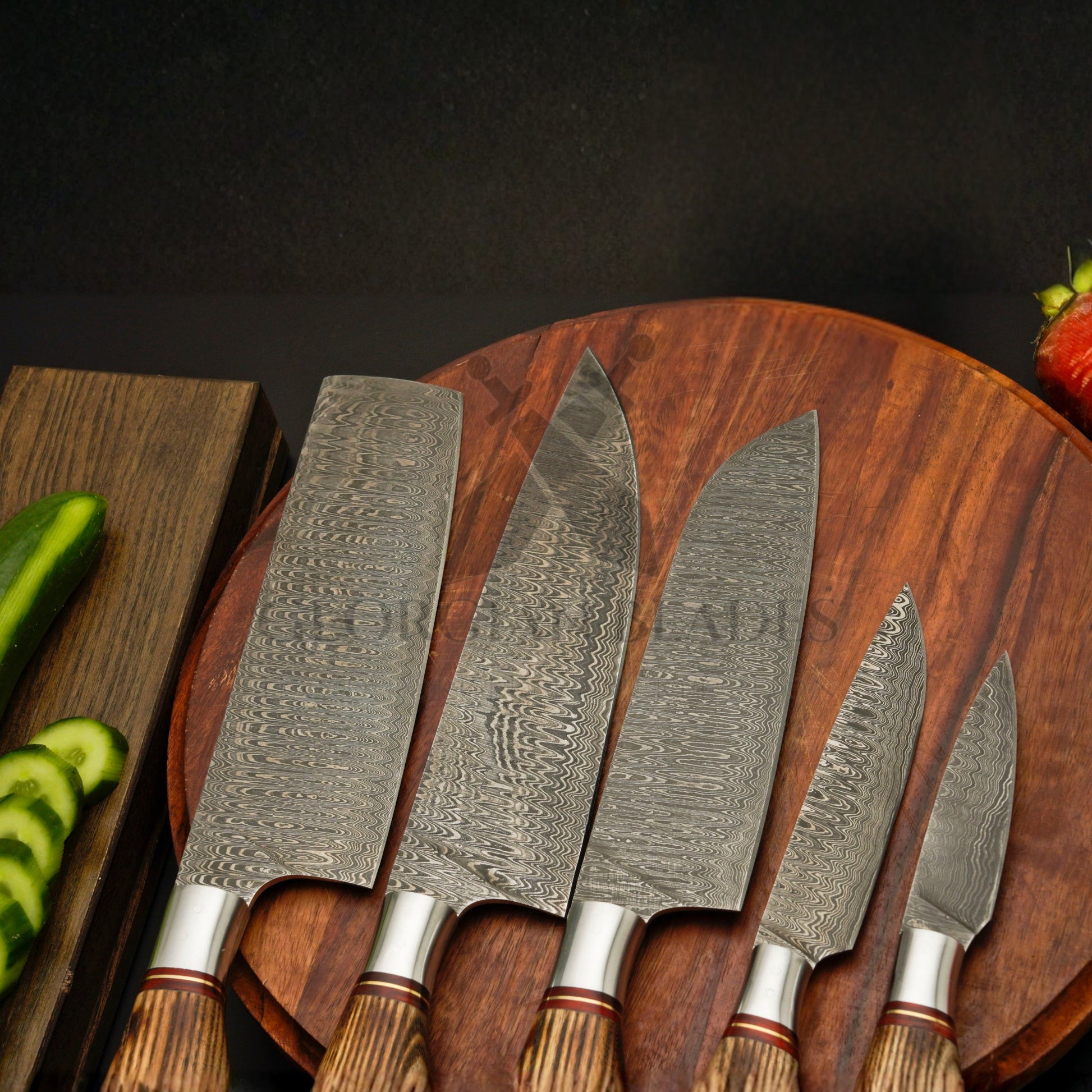 5 essential kitchen knives: Nakiri, Chef, Santoku, Utility, and Paring