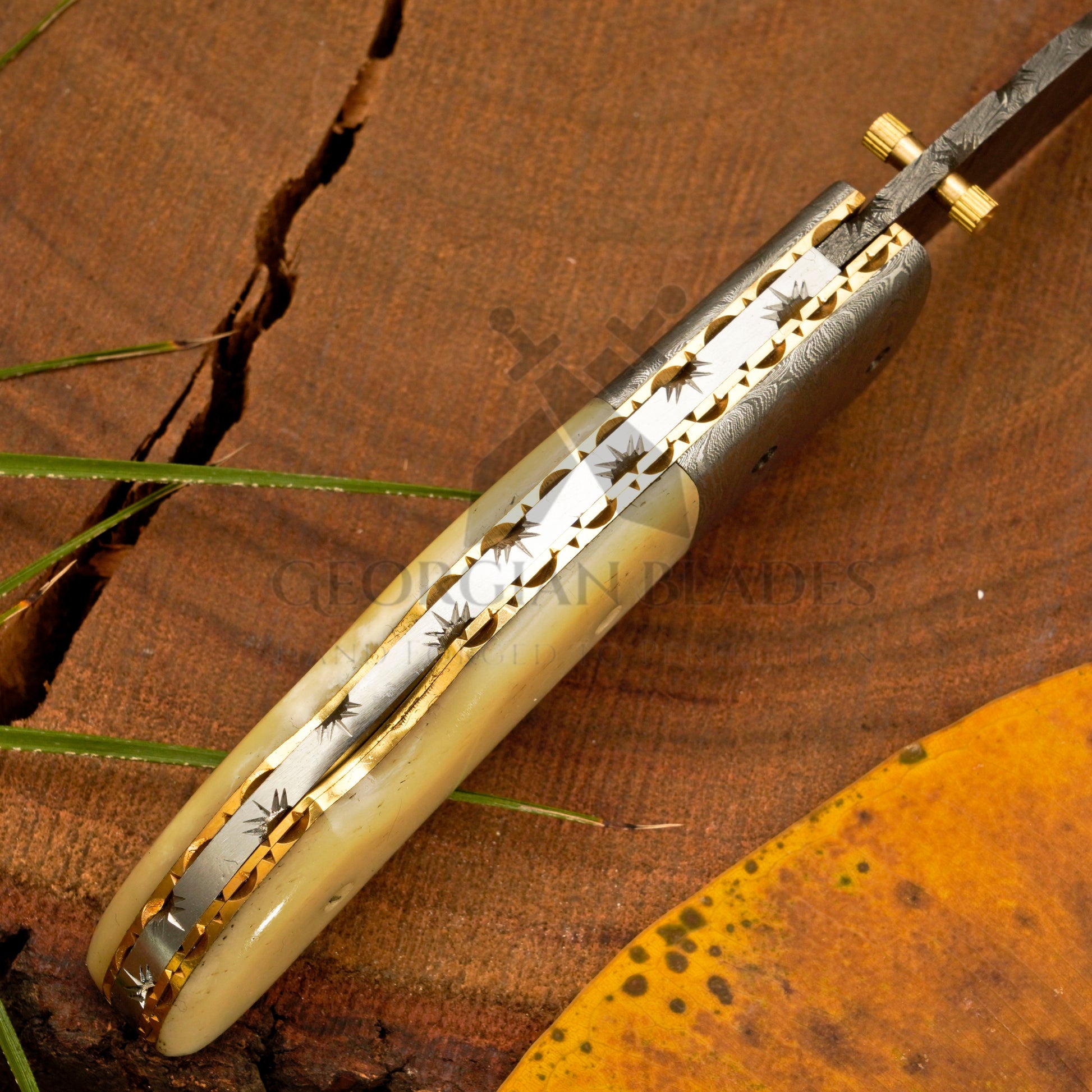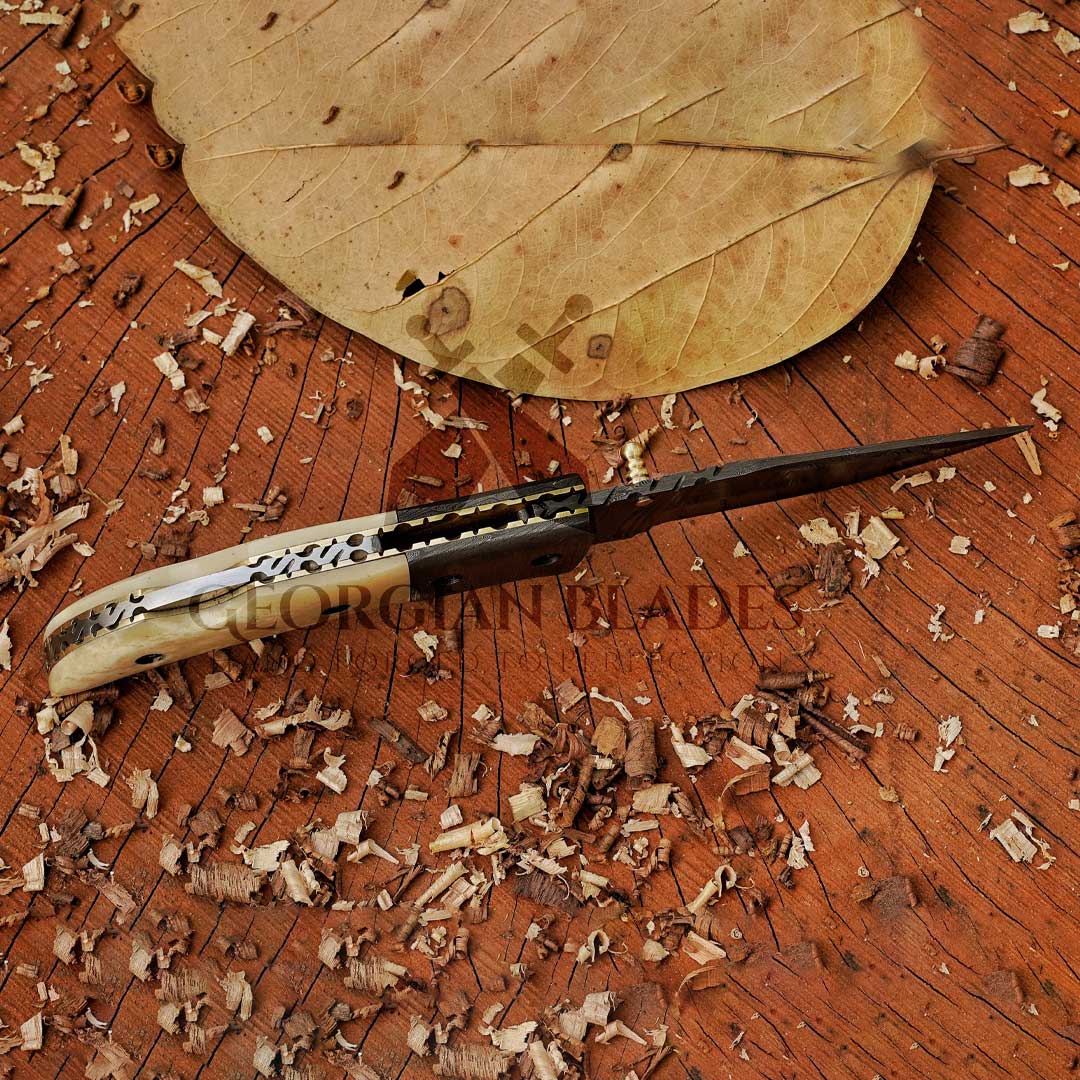 - Handle Material: Crafted from Bone and featuring a Damascus Bolster, the handle provides a comfortable grip and unique design.