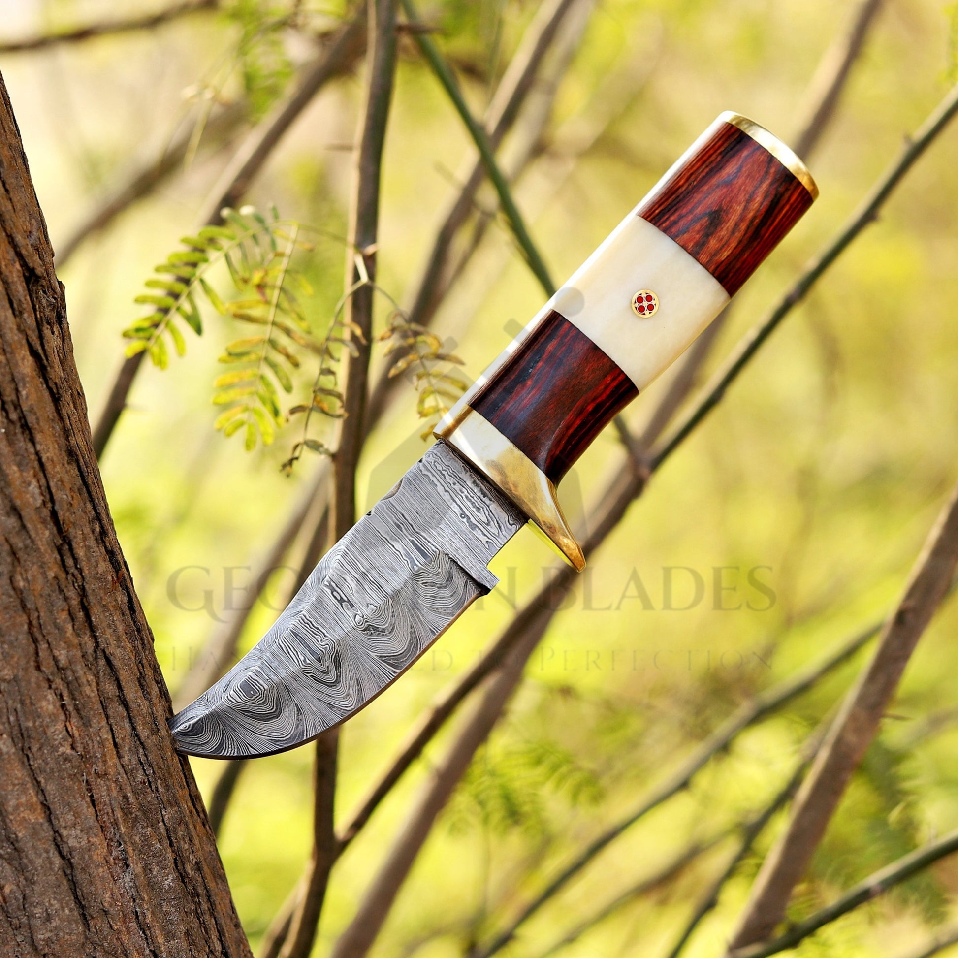 Mike Fink Skinner - CUSTOM HANDMADE FORGED DAMASCUS Steel Hunting Knife Wood & Camel Bone Handle