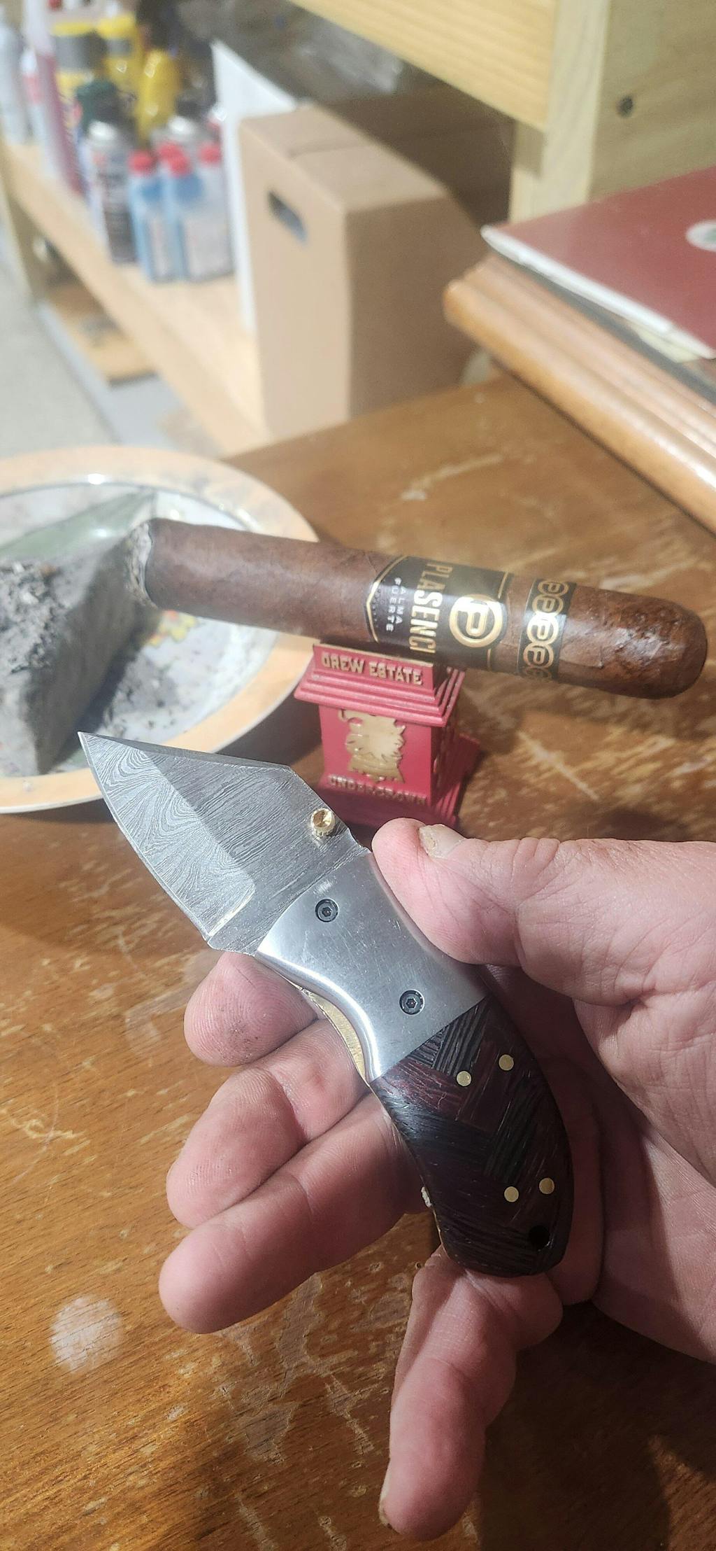 But what truly sets the Mini Marvel apart is its checkered wood handle, which not only provides a secure grip but also adds a touch of sophistication to your ensemble. Crafted with meticulous attention to detail, this handle ensures that you have complete control over every cut and slice.