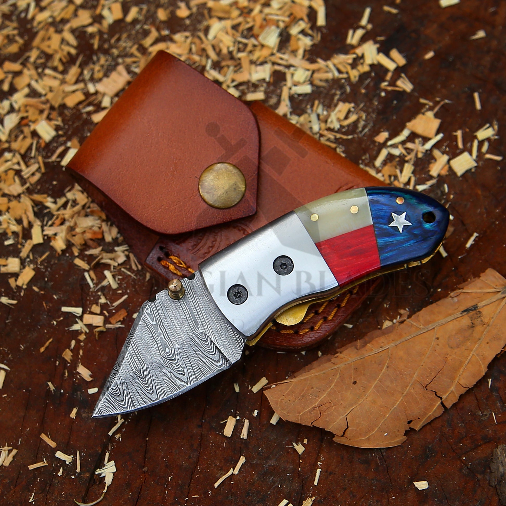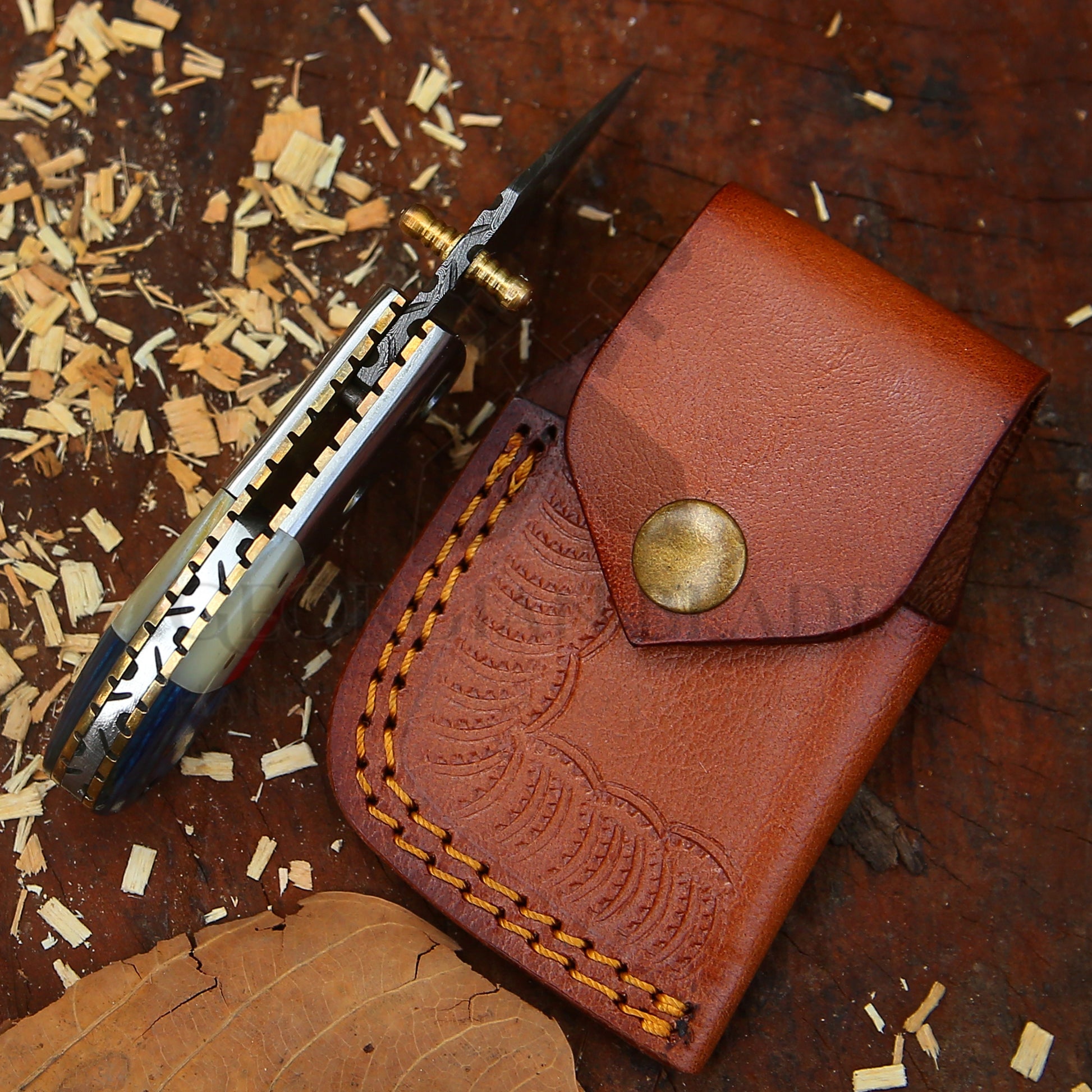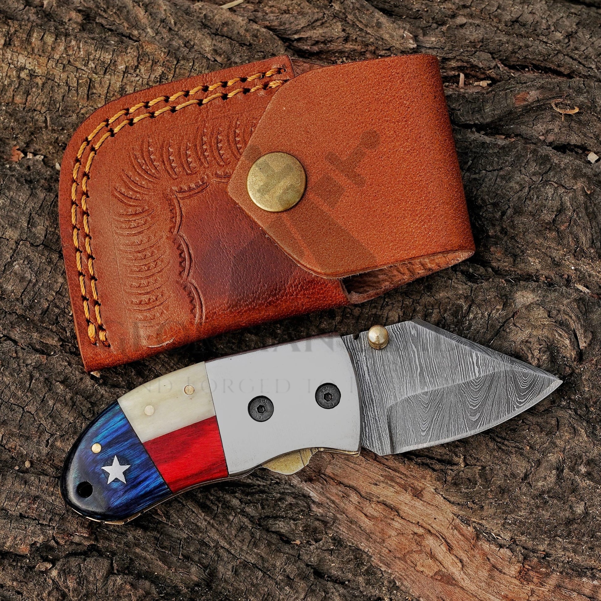 Paul Revere Knife - Hand Forged 5" EDC Mini Pocket Folding Knife with Leather Sheath
