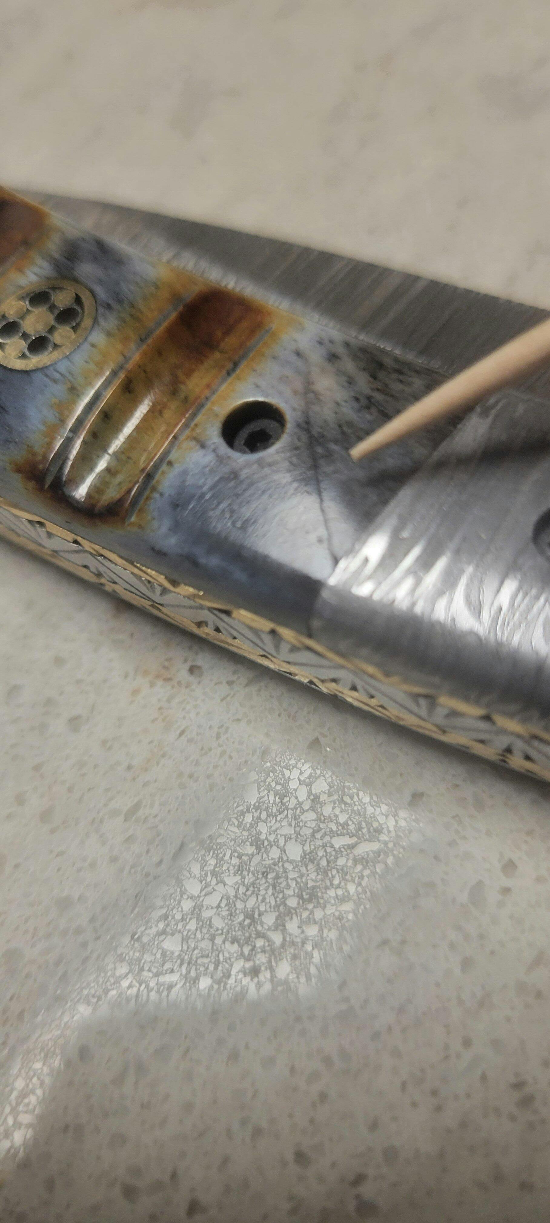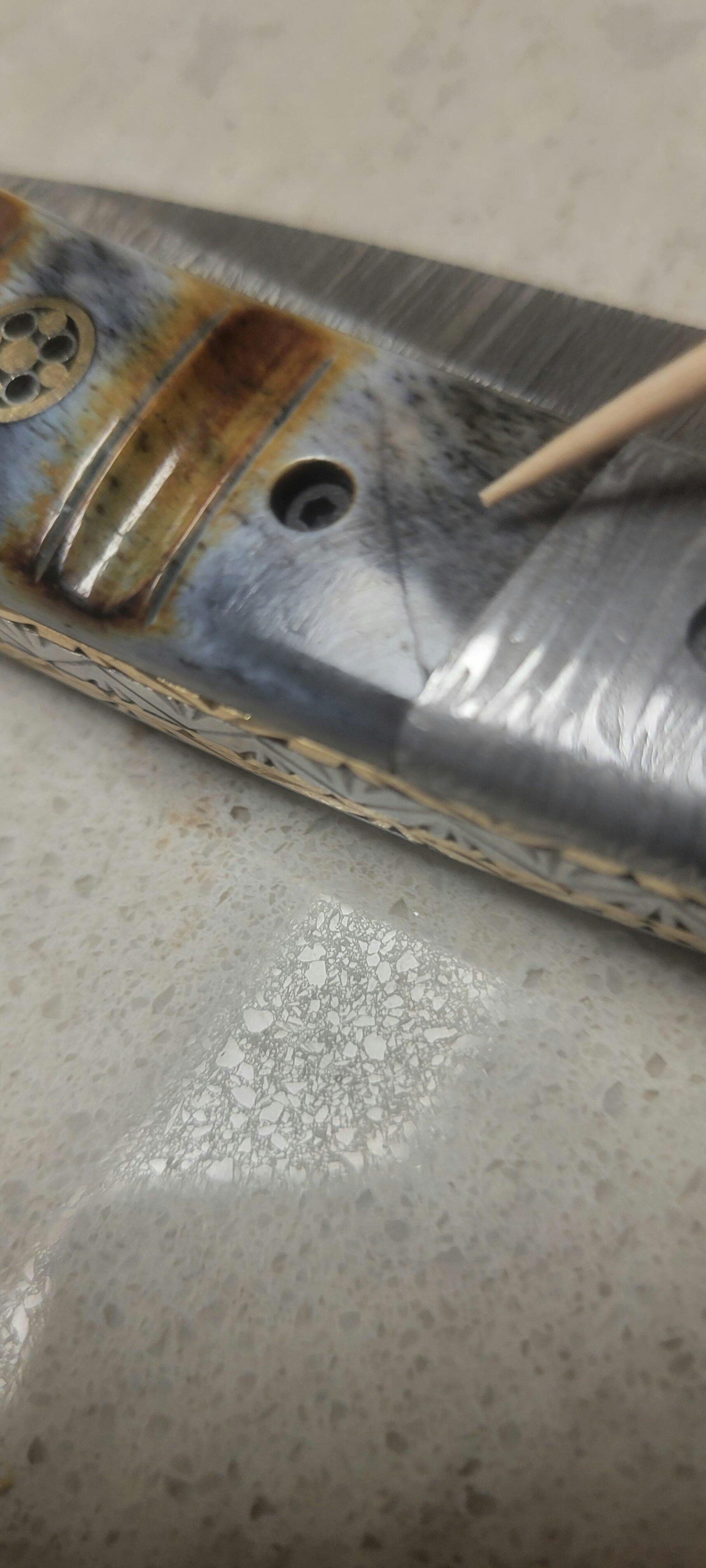 The "Glenn" is a beautiful piece for sure. Unfortunately, I discovered a small, hairline fracture in the bone handle. I'm disappointed, however, the rest of the knife is beautiful.