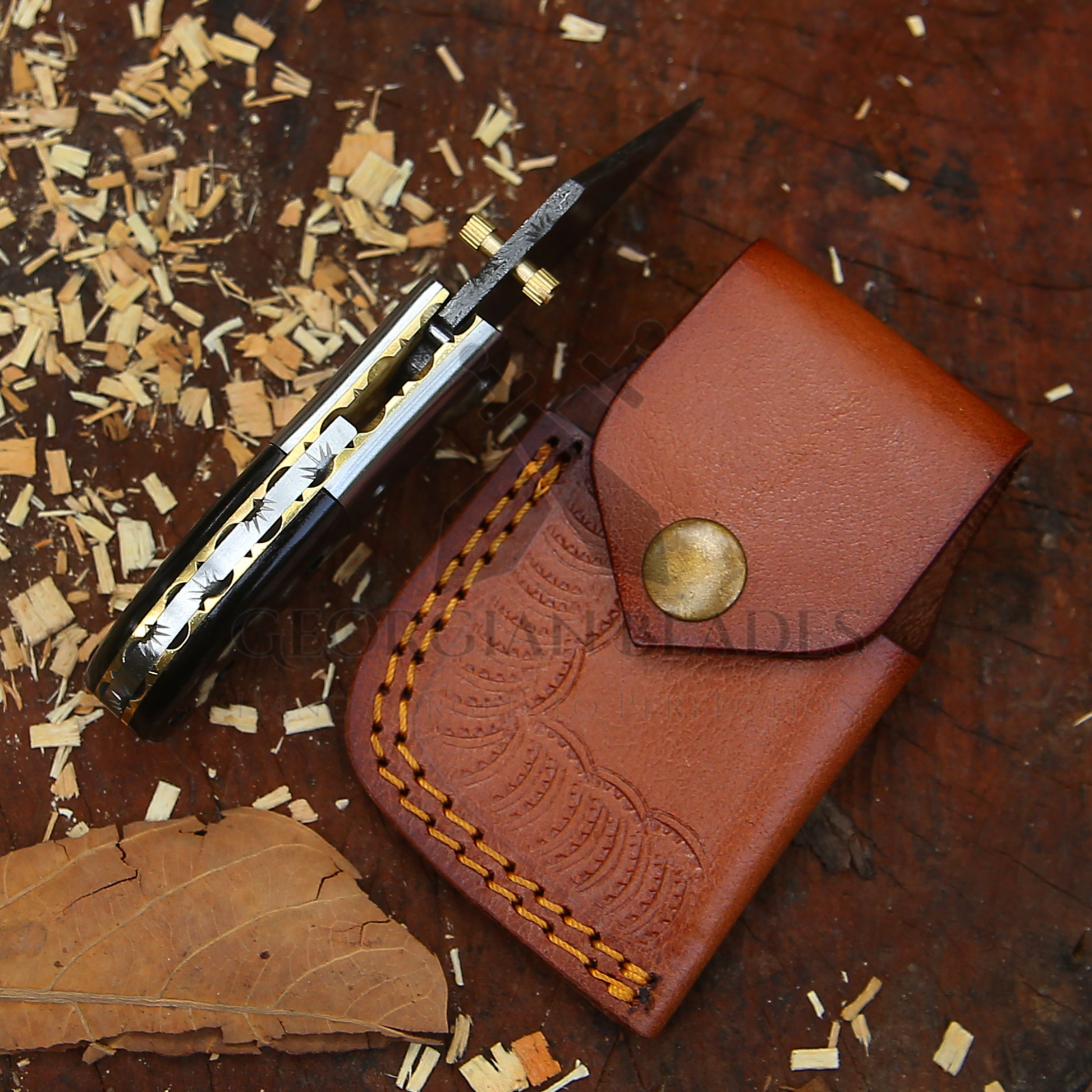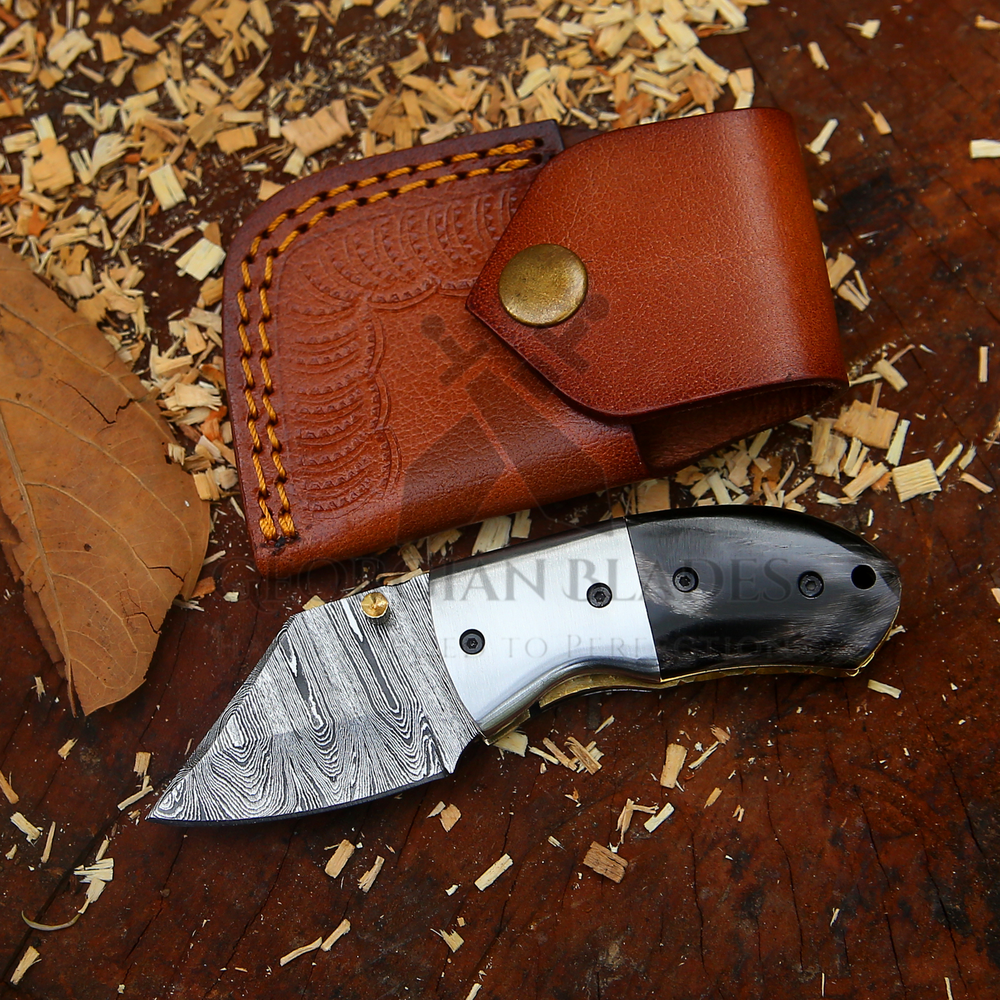 Tiny Torque - Hand Forged 5.5" EDC Mini Pocket Folding Knife with Leather Sheath